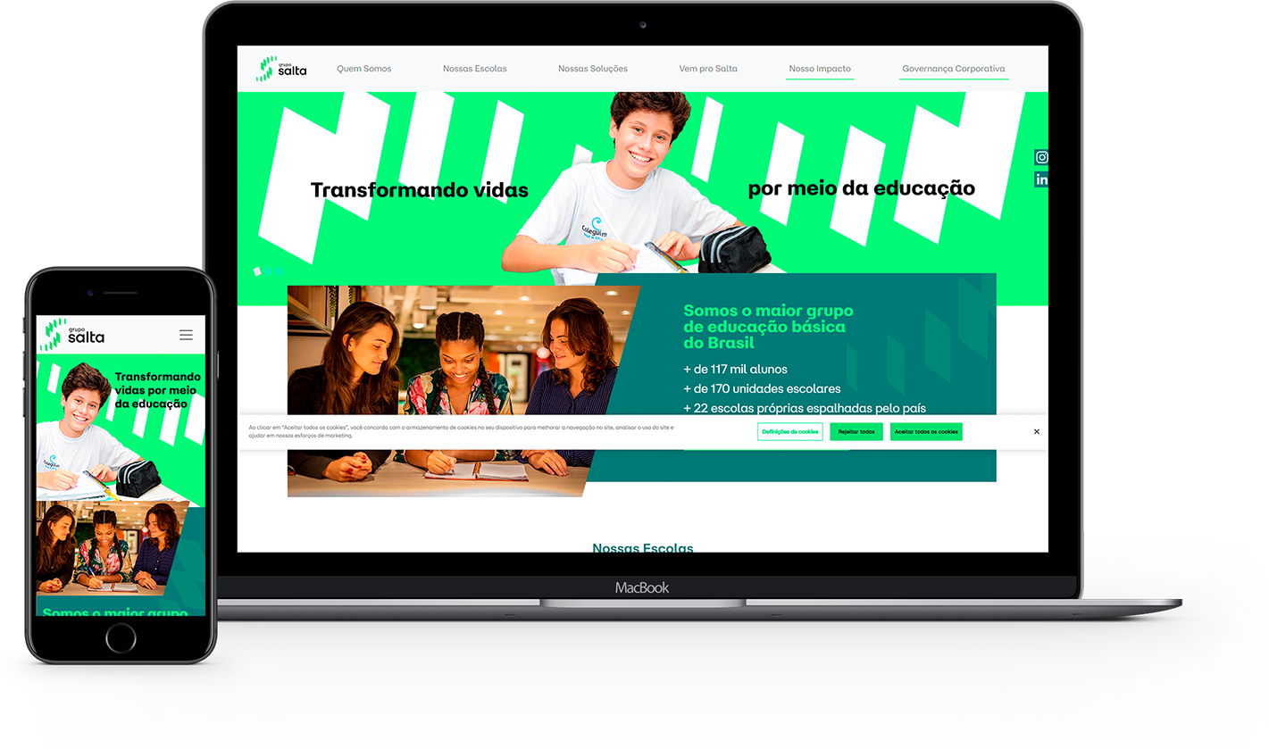 Mais um job pra agência TITÂNIO, e dessa vez foi pra criar o site do Grupo Salta com o novo branding da marca. Fizemos um layout moderno, dinâmico e com todas as funcionalidades que o cliente nos solicitou, incluindo versões fidedignas responsivas, interatividades com JavaScript e coesão gráfica. Acesse www.https://gruposaltaedu.com