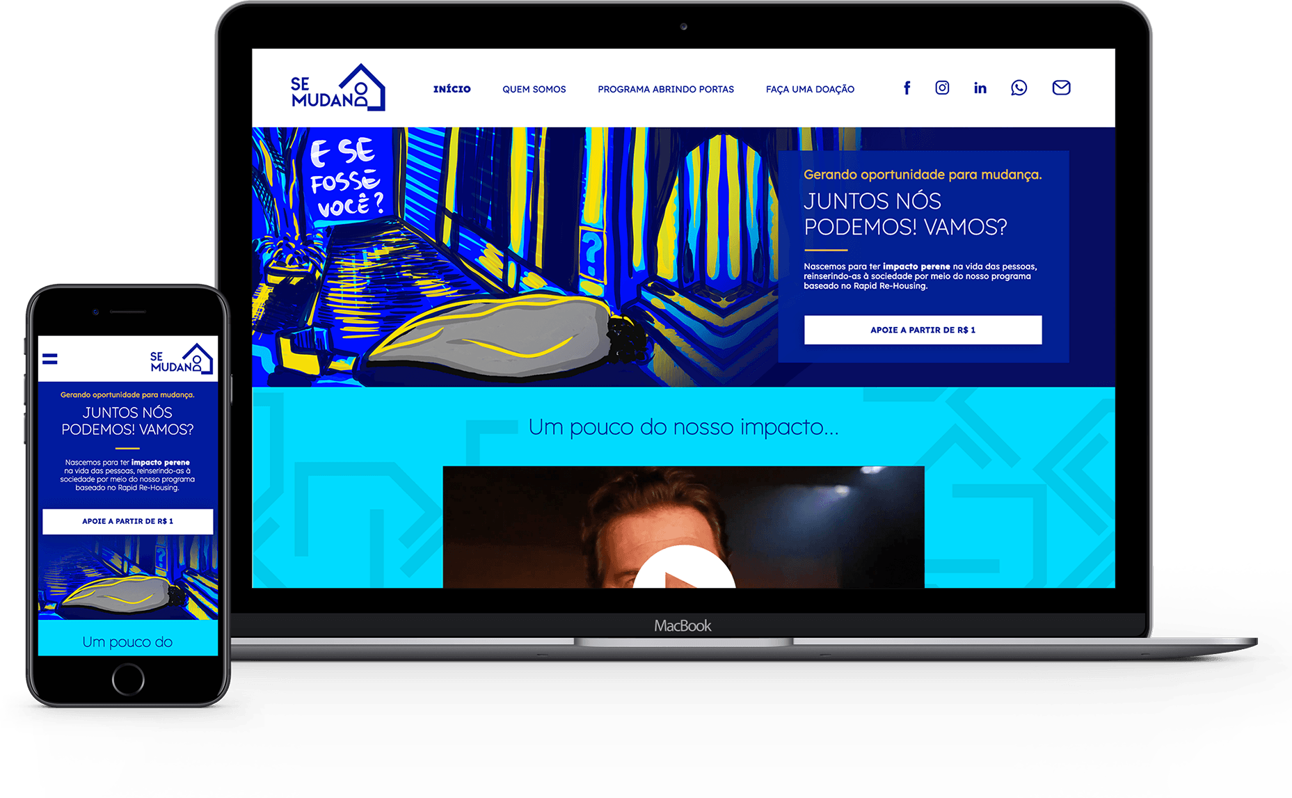 O SE MUDANDO é um projeto social com foco nas pessoas em situação de rua e foi completamente pro bono, onde tivemos oportunidade de aprimorar nossas skills de branding, ilustração e também de desenvolvimento de sites e programação, incluindo html5, css e javascript. Acesse www.semudando.com.br